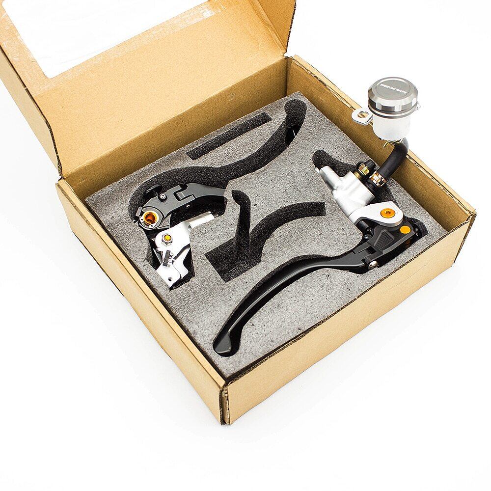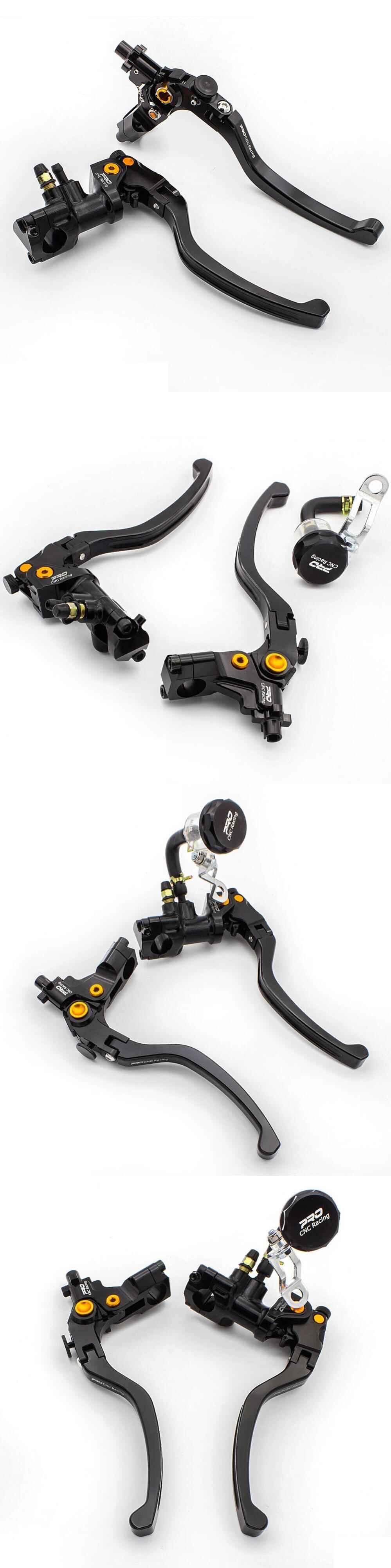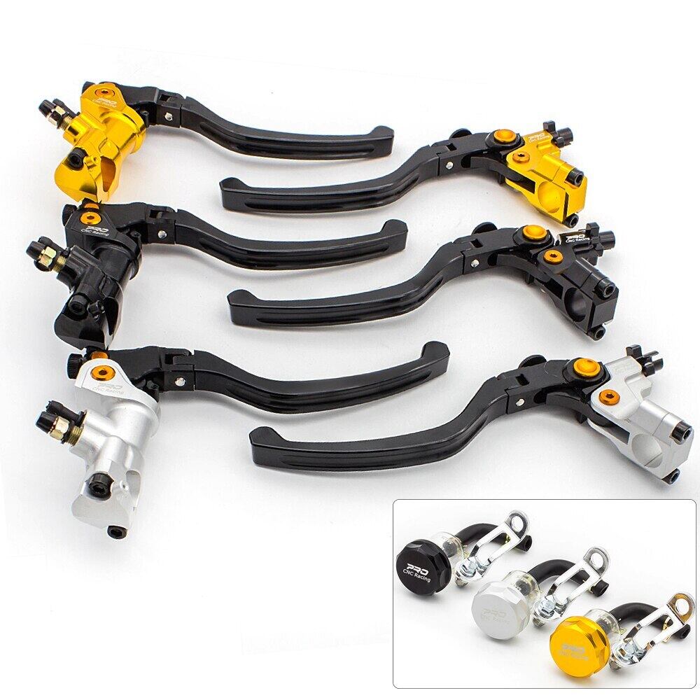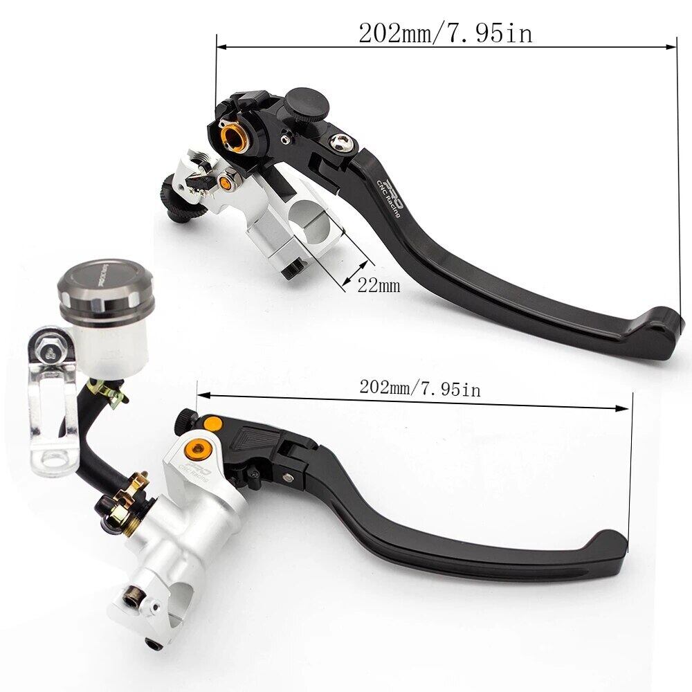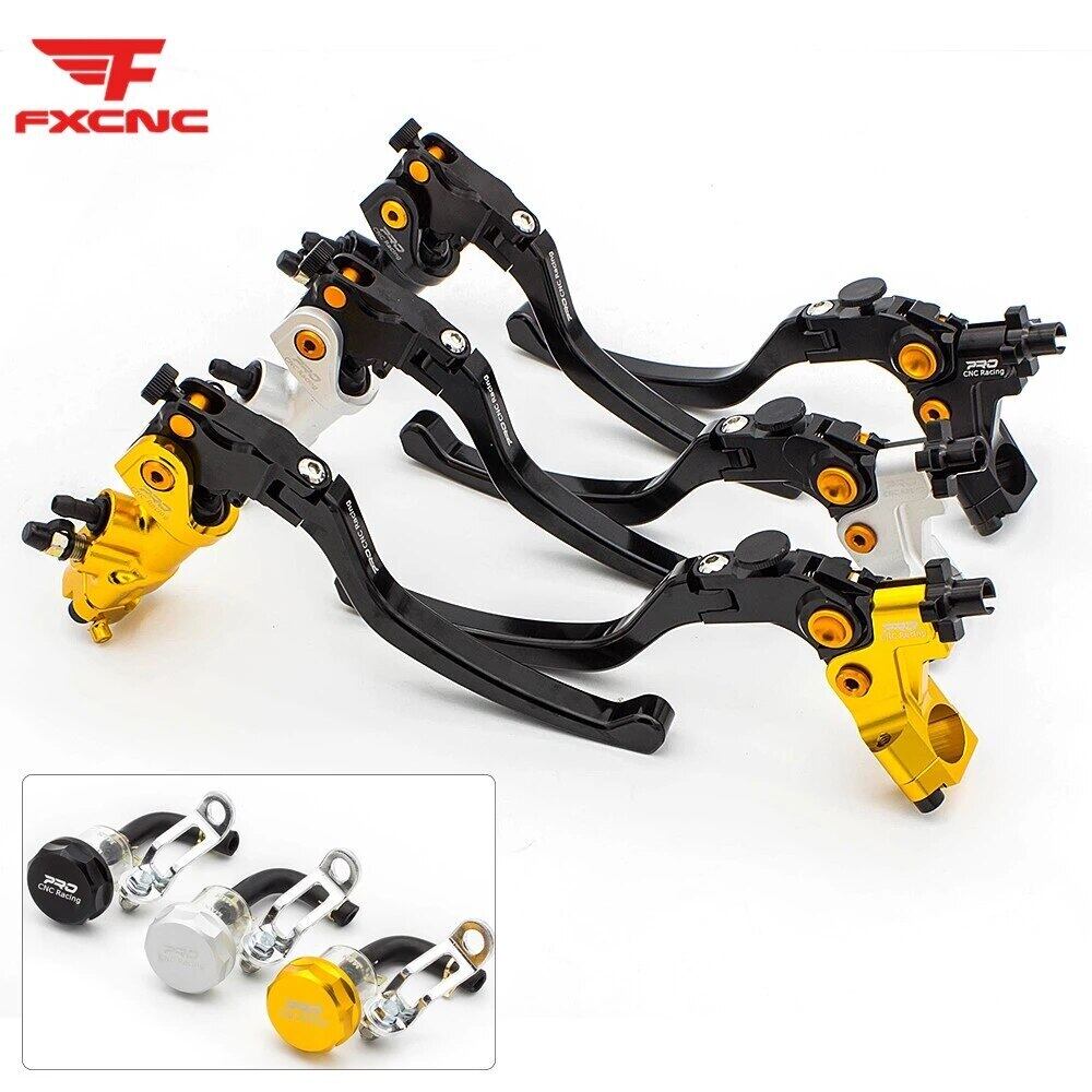 新作 モーターサイクルマスターシリンダーリザーバー油圧ブレーキケーブルクラッチレバーセット7/8 "22mmハンドルバー19mmピストンサイズFXCNCを調整します