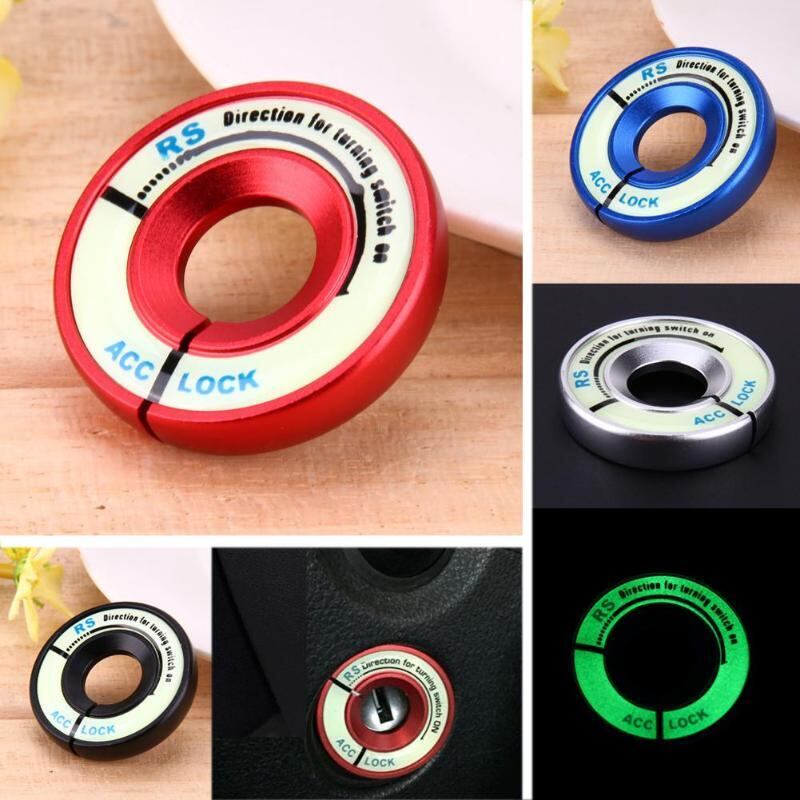 新作 アルミ合金ルミナスカーイグニッションキースイッチリングカバーダークキーホールで光るステッカーオートインテリアアクセサリー