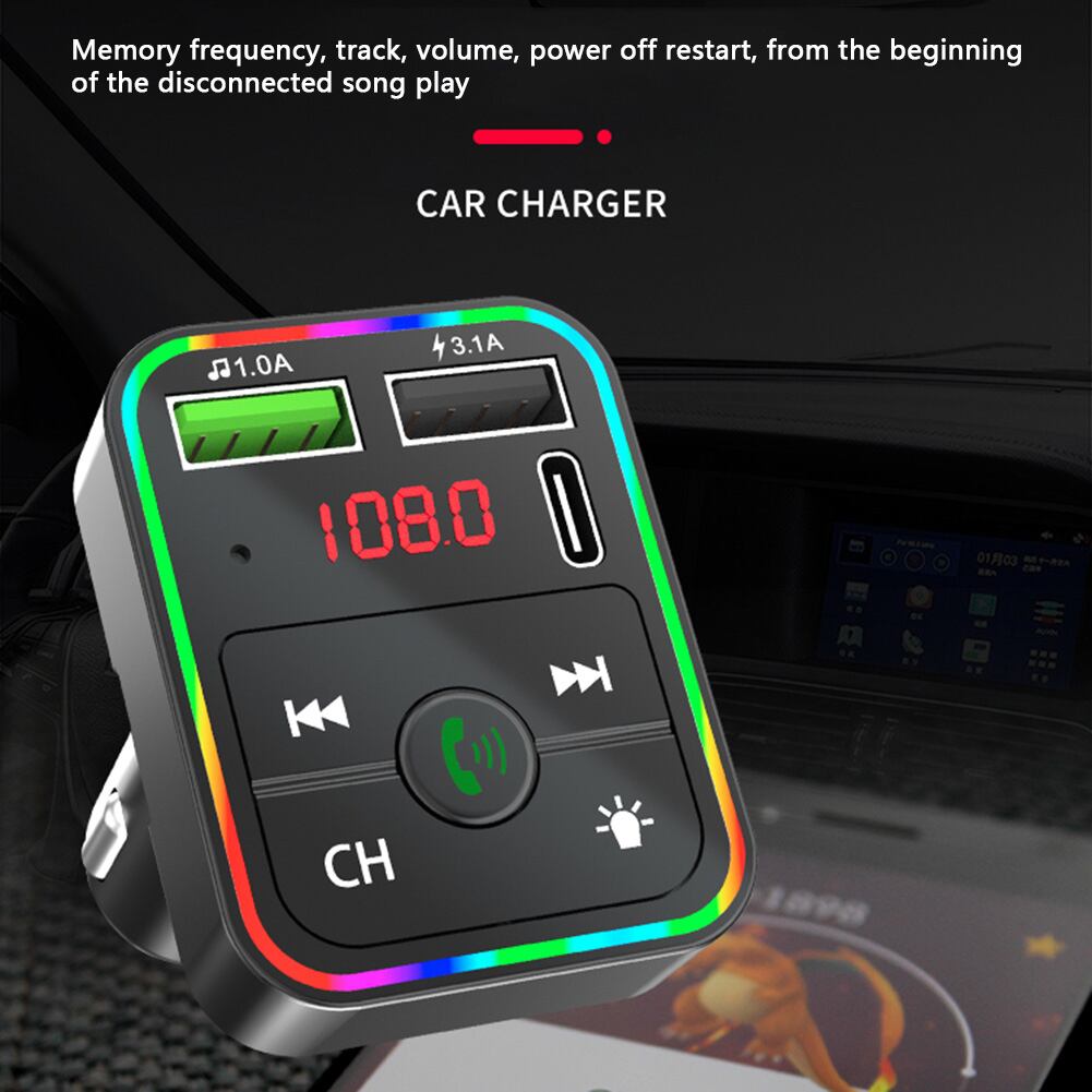 新作 F2デュアルUSB急速充電器カーアクセサリーBluetooth対応FMトランスミッターカーワイヤレスFMラジオアダプターUSBCPDチャージャー