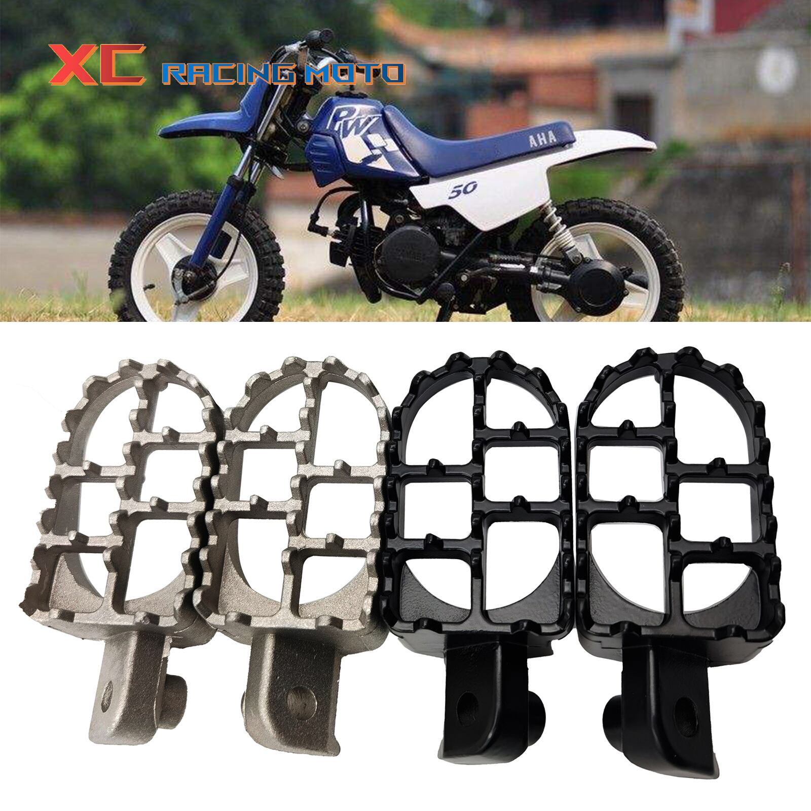 新作 2 個アルミパッドモトクロスオートバイフットペグフットレストヤマハ PW50 PW80 ホンダ XR50R CRF50 CRF70 CRF80 CRF100F