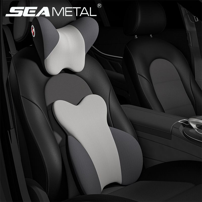 カーネックピローセット 超ソフトメモリーフォームヘッドレストピロー 人間工学に基づいた首/腰椎サポート ユニバーサル自動車インテリアアクセサリー