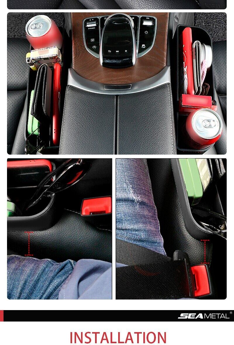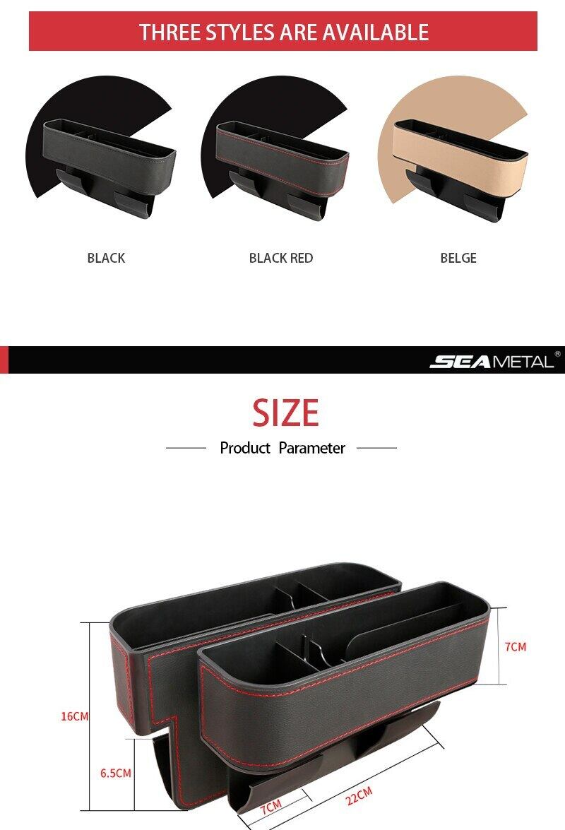 カーシートギャップオーガナイザー PU レザーオートストレージポケットユニバーサル容量ノンスリップカーフロントシート隙間収納ボックス