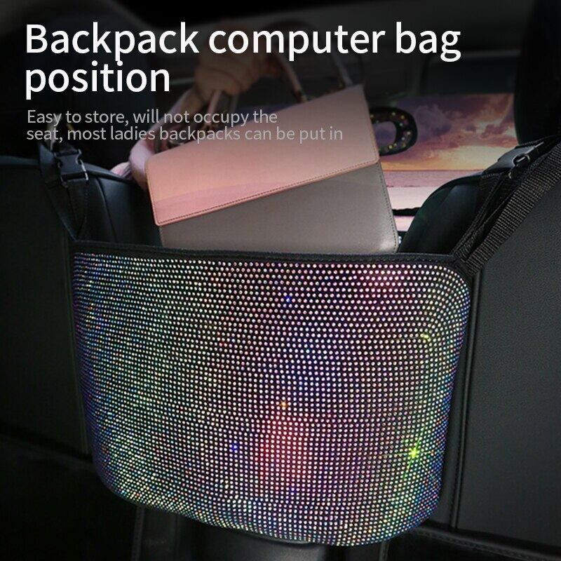 ケバケバカーシート収納ポケットラインストーンハンドバッグホルダー女性車オーガナイザーシートバック収納袋自動片付け