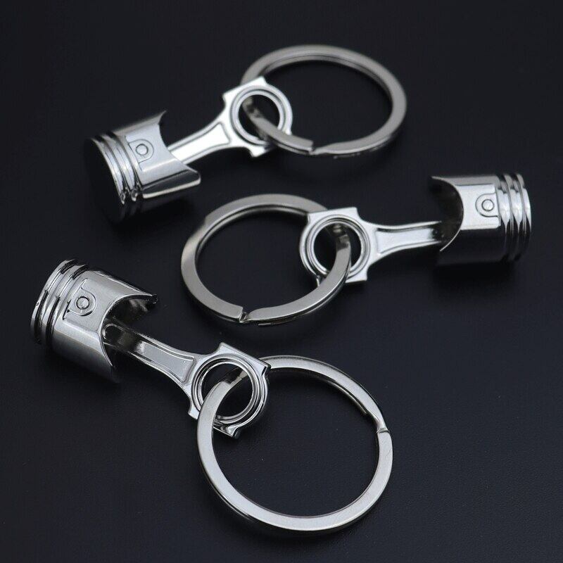 亜鉛合金エンジン銀色ピストンキーリングチェーンキーホルダーキーフォブシルバー色をご用意ヨーロッパ男性ギフト装身具