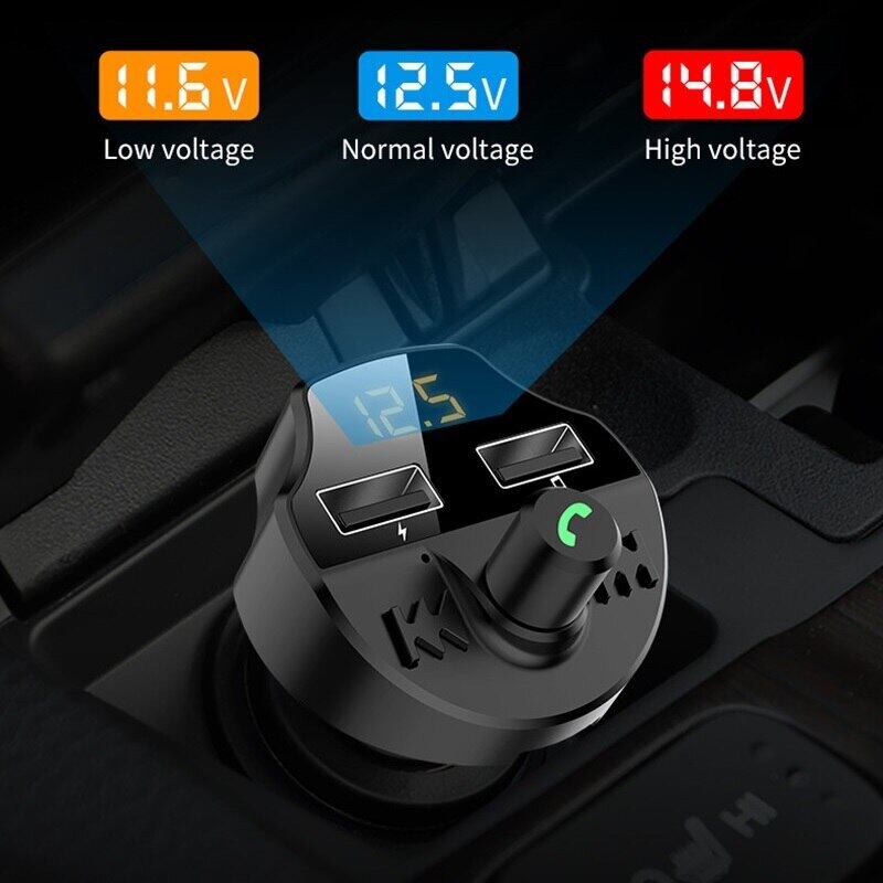 カーハンズフリー Bluetooth 5.0 FM トランスミッターキット MP3 変調器プレーヤー ハンズフリーオーディオレシーバー 2 USB 急速充電器アクセサリー