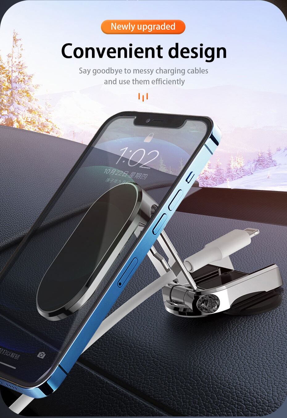マグネット車載電話ホルダー伸縮式折りたたみ360度回転電話マウントユニバーサルスマートフォンスタンドブラケットカーアクセサリー