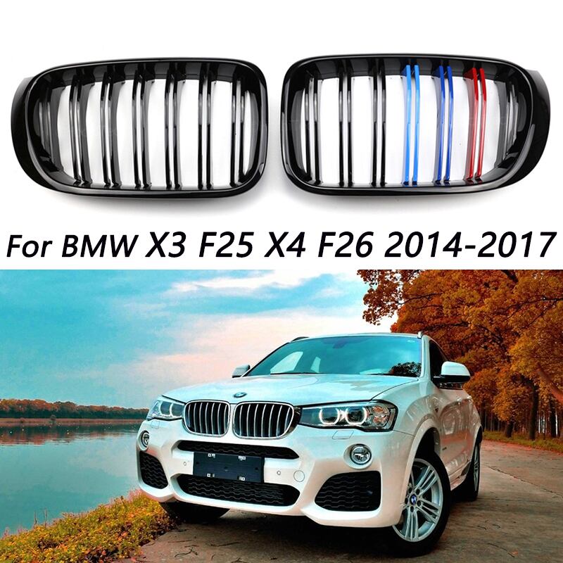 2 個の車のフロントバンパーグリルグリルトリムストリップカバー腎臓スポーツダブルラインスラット BMW X3 X4 F25 F26 2014 2015 2016 2017