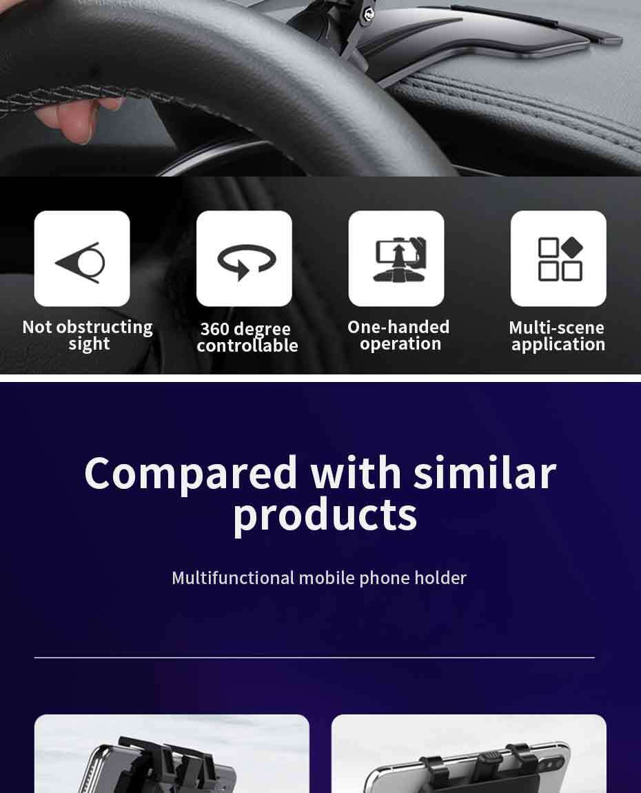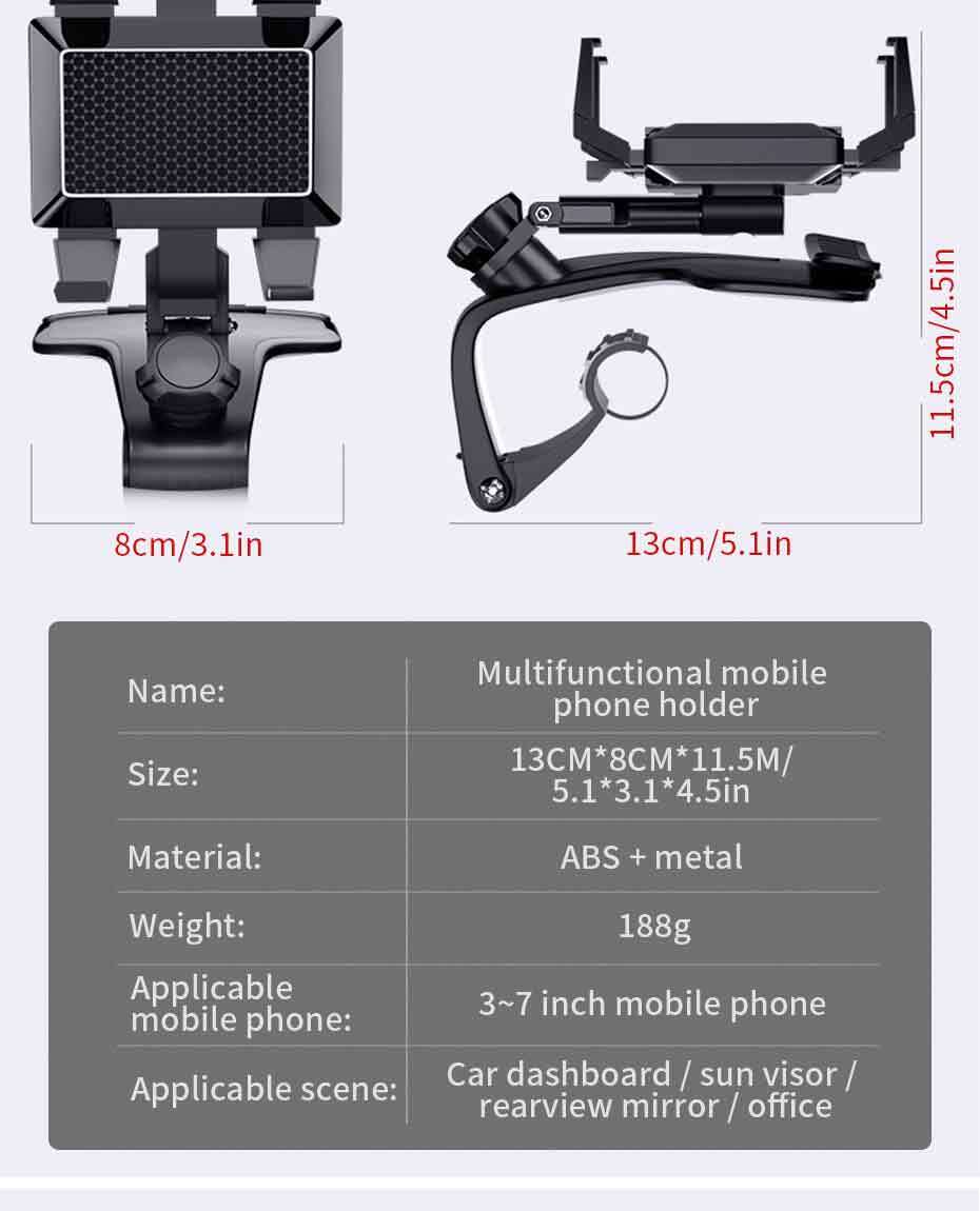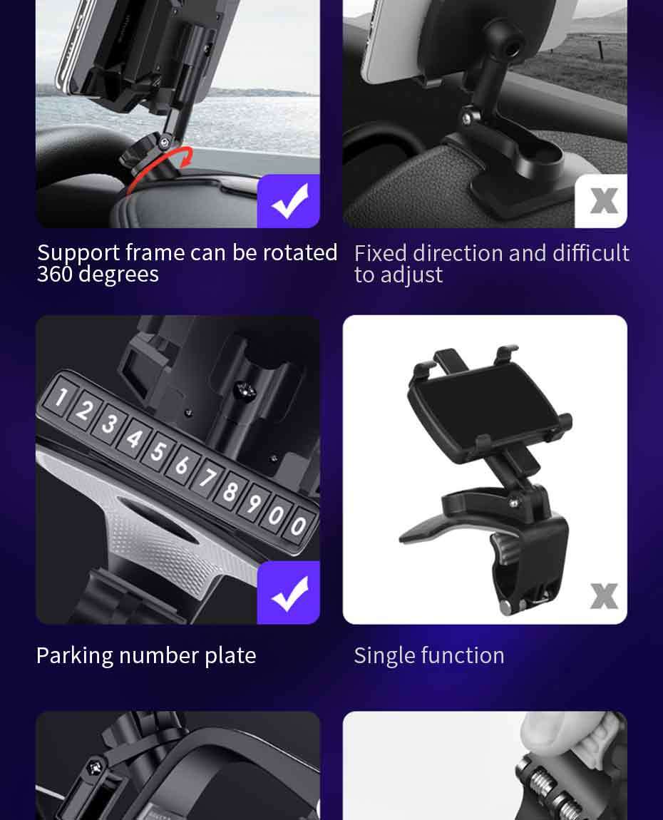 ユニバーサルカー携帯電話ホルダー 4-7インチ 多目的 ダッシュボード/サンバイザー/バックミラー 電話サポート 駐車番号付き